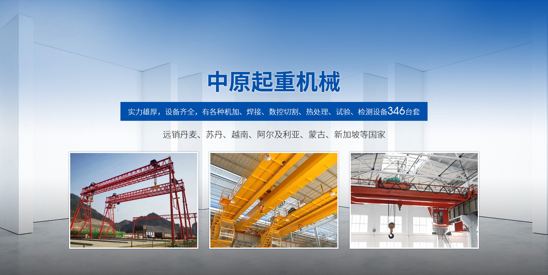 新鄉市中原起重機械有限公司成立于2000年,地處中原,輻射全國28個省市自治區,設外埠經銷處、辦事處268個。產品行銷工礦、建材、化工、冶金、電力、交通、鐵路、油田、港口等各個行業。遠銷丹麥、蘇丹、越南、阿爾及利亞、蒙古、新加坡等國家?! 」緦嵙π酆瘢O備齊全,有各種機加、焊接、數控切割、熱處理、試驗、檢測設備7臺;有機加工、熱處理、單、雙梁橋門機生產、檢測、安裝等9個車間,研究中心、運輸公司、安裝維修服務公司等機構,?  主要產品有:LD型1~20噸電動單梁起重機系列產品;5~600噸通用橋式、門式、冶金、上旋轉下旋轉電磁吊、絕緣、抓斗、防爆起重機系列產品;LH3~100噸葫蘆雙梁系列產品;MH5~32噸葫蘆門式系列產品;0.5~40噸CD1、MD1鋼絲繩電葫蘆系列產品;HS1型0.5~20噸手動葫蘆系列產品;0.5~10噸環鏈電動葫蘆系列;0.5~40噸彎道電動葫蘆系列產品;裝卸橋、造船門機、架橋機、鑄造吊和水電大噸位起重機系列產品?! 」窘⒘藦娪辛Φ馁|量保證體系和生產過程的質量控制系統,嚴格執行國家設計、生產標準,有嚴格的生產工藝過程和標準,嚴格的檢驗、檢測標準和手段。